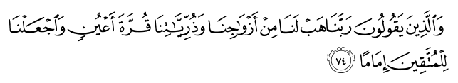 And those who say, "Our Lord, grant us from among our wives and offspring comfort to our eyes and make us an example for the righteous."